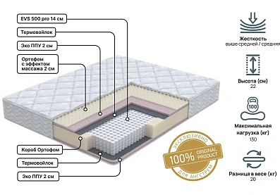 Матрас Anatomic Duo Pro 160 х 190 Выше среднего с пружинным блоком