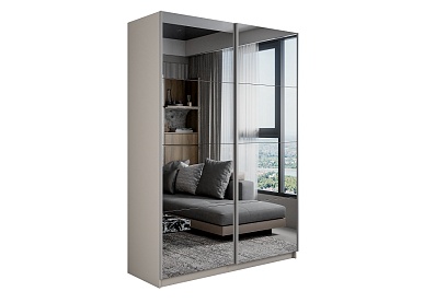 Шкаф-купе Lux 1400х2300х570, зеркальные фасады / Кашемир 140x230 Кашемир , С полками