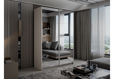 Шкаф-купе Lux 160 х 230 с зеркальными дверцами / Кашемир 160x230 Кашемир , С полками