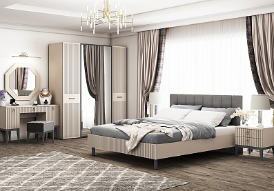 - Мебель установлена на деревянных опорах с эмалевой отделкой серого цвета.