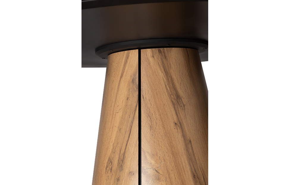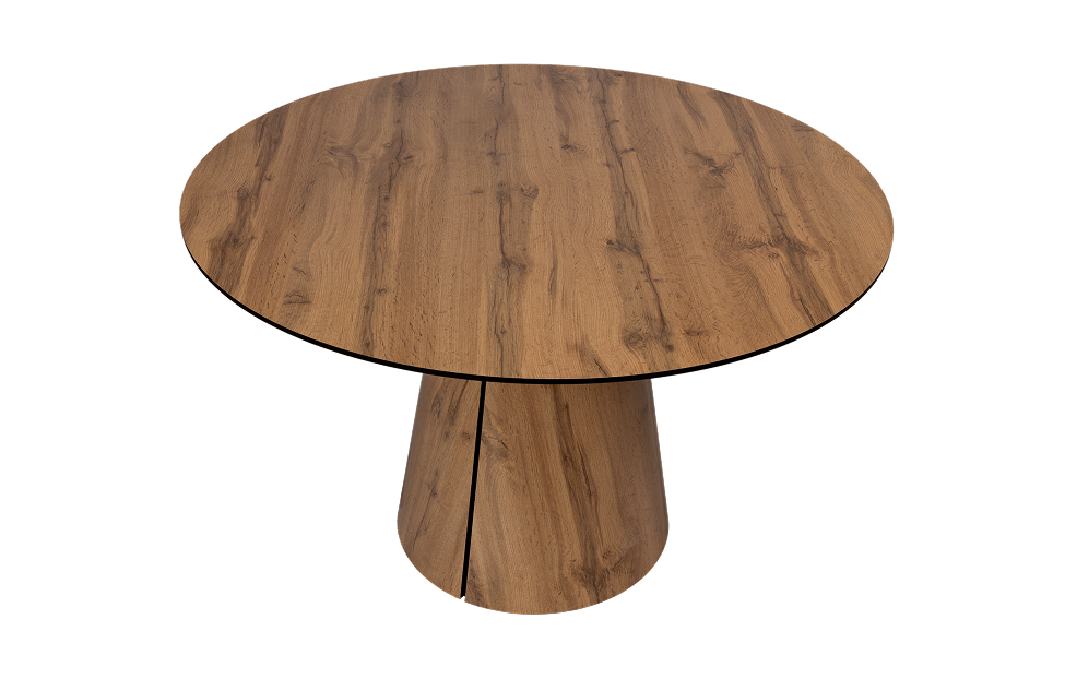 Стол обеденный Бруно - трендовая модель круглого не раскладного стола. Столешница выполнена из антивандального пластика HPL дублированного МДФ 19. Нога выполнена из гнутоклееной фанеры, покрытой антивандальным пластиком HPL.