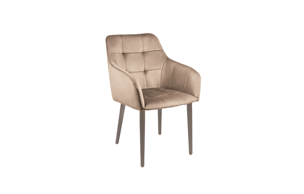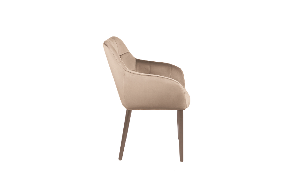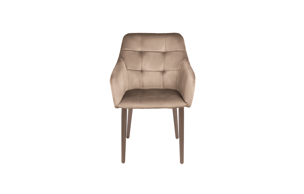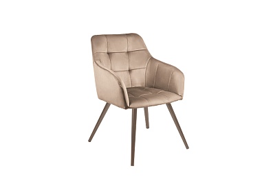 Стул-кресло Отэм прекрасно впишется в любой интерьер и комнату. Такой стул можно использовать как в качестве обеденного стула, так и в виде рабочего кресла к письменному столу. Обивка из велюра в актуальном бежевом оттенке прекрасно гармонирует с металлическими ножками цвета капучино. Такие стулья украсят современные интерьеры, а также пространства в стиле эклектики.