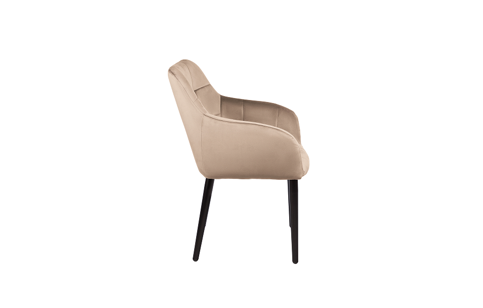 Стул-кресло Отэм прекрасно впишется в любой интерьер и комнату. Такой стул можно использовать как в качестве обеденного стула, так и в виде рабочего кресла к письменному столу. Обивка из велюра в актуальном бежевом оттенке прекрасно гармонирует с металлическими ножками черного цвета. Такие стулья украсят современные интерьеры, а также пространства в стиле эклектики.