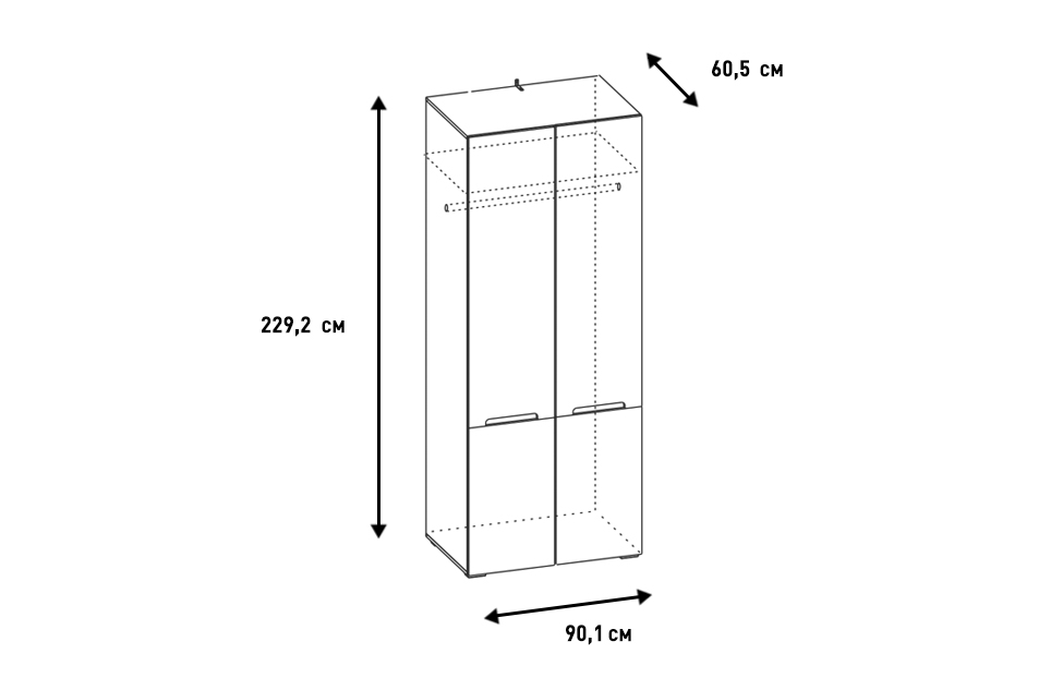– описание: размер 229.2x90.1x60.5 см, назначение для одежды, стиль современный, минимализм, цвет швейцарский вяз, белый.