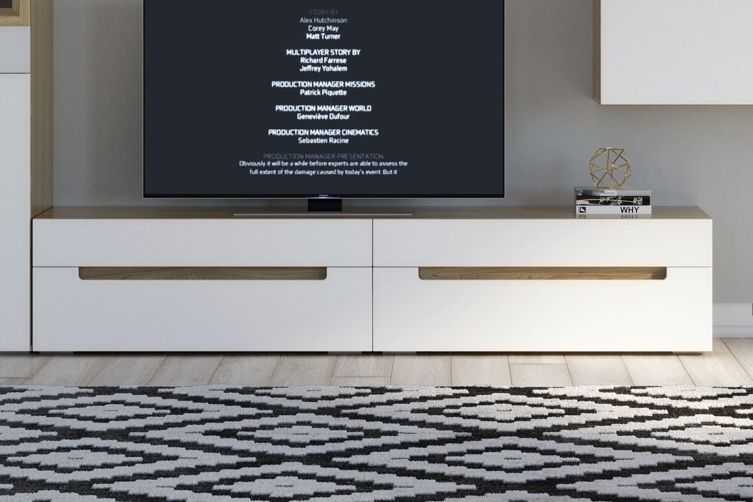 – описание: назначение под тв, цвет швейцарский вяз, белый, размер 37.2x180.2x41.3 см, стиль современный, минимализм.