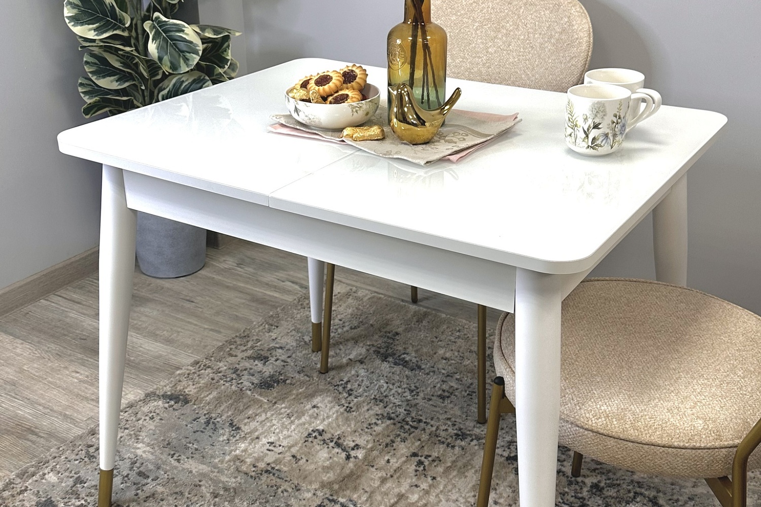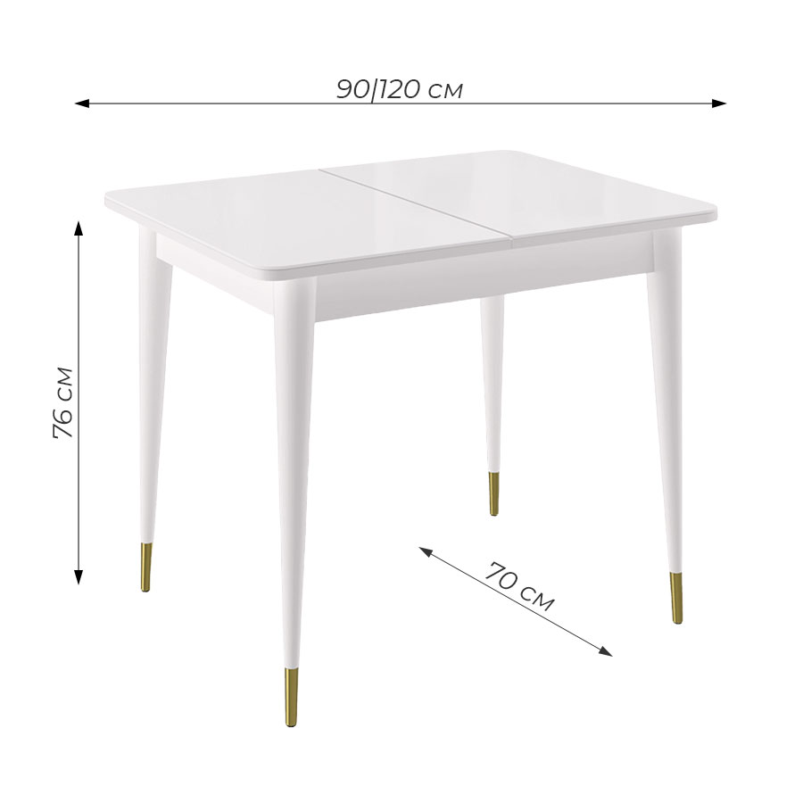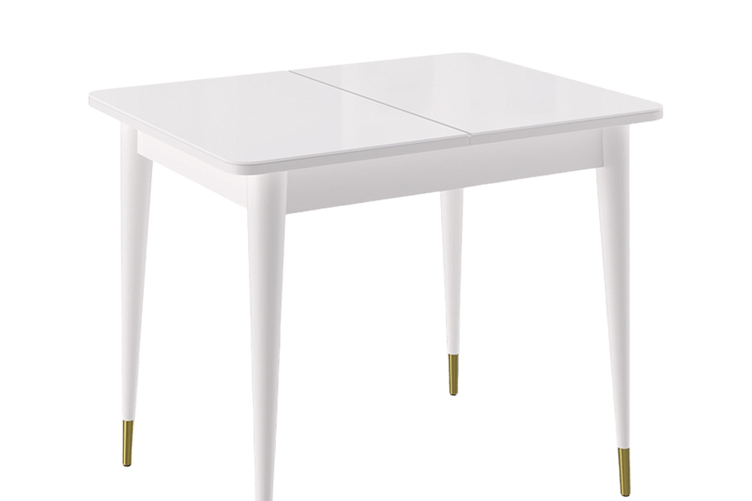 Стол обеденный Мане прямоугольный раздвижной К1100 опоры белого цвета с металлическими наконечниками, столешница - стекло белое сатин.