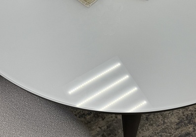 В столе используются уникальные дизайнерские опоры из металла. Тонкие, очень прочные, они дают достаточную ширину для того, чтобы поставить 2 больших стула по широкой стороне стола, и обеспечивают столу идеальную устойчивость