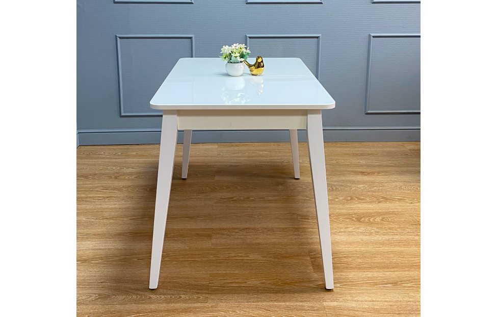 Стол обеденный Орпен квадратный раздвижной 1100М опоры белые, столешница - стекло белое глянец.